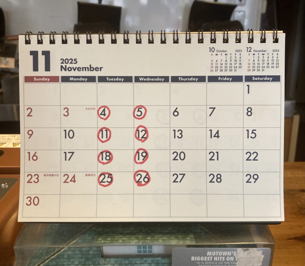 11月のお休み